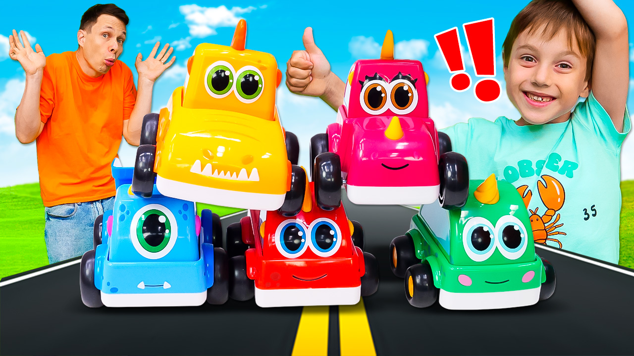 Игры в машинки Мокас! Видео для детей про игрушки - Запускаем инерционные машины монстрики!