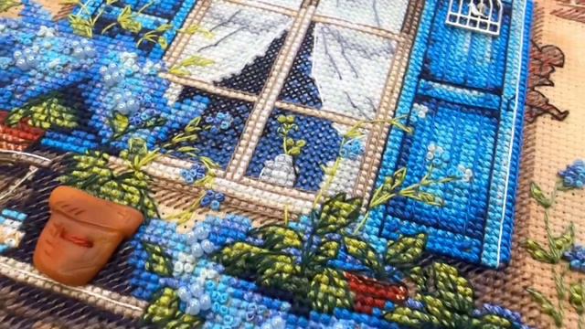 Набор для вышивания нитками «Окошко с лобелией»