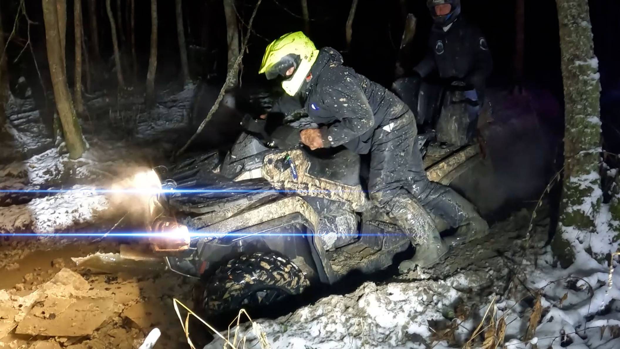 ТАРАНИМ ЛЕД НОЧЬЮ. Квадроциклы застревают в просеке.