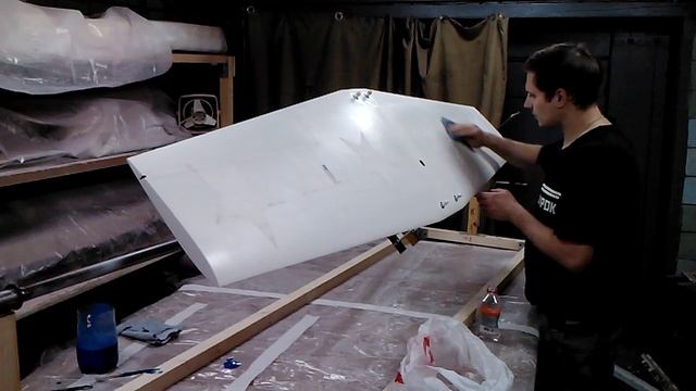 №221- Покраска крыла синим цветом, 1слой.