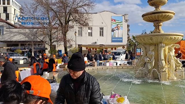 Сборка рекордного мандаринового торта длиной 54 метра на площади С. Багапш