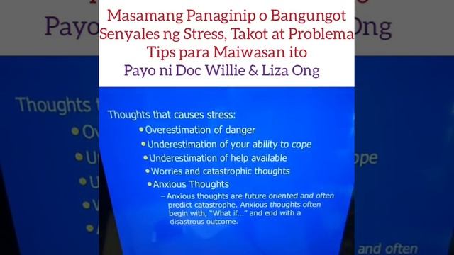 Masamang Panaginip: Ano Ang Dahilan? Bata at Matanda puwede Apektado Payo ni Doc Willie Ong at Doc Liza Ramoso-Ong #853 1. Ang masamang panaginip ay dahil sa nerbiyos, stress at depression. 2. Isipin ninyo kung ano ang dahilan ng mga panaginip ninyo para magkaroon ng solusyon. 3. Sa mga bata na merong masamang panaginip, alamin kung sila ba ay na-bully sa eskwelahan, problema sa teacher o grado, o masamang karanasan na hindi maisabi. Alamin ang mga tips: https://youtu.be/2mAurvNCSmM