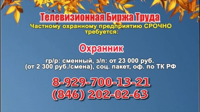 Вакансии и телефоны прямых работодателей в специализированной программе по трудоустройству "Телевизионная Биржа Труда" - г.САМАРА, г.ТОЛЬЯТТИ