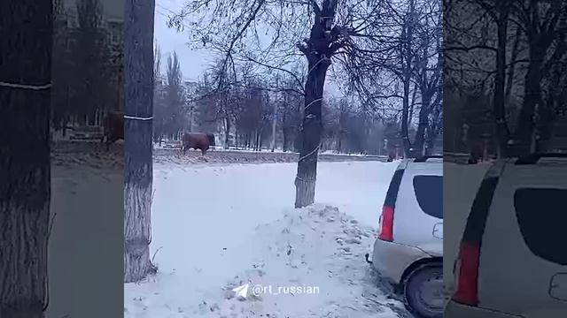 Бык сбежал от фермера в Орле и спокойно гулял по городу