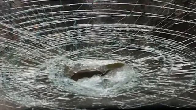 Рессора влетела в лобовое стекло. В Москве на Минском шоссе, в белый Солярис, стоящий в пробке влетела рессора от грузовика. Металлическая пластина полетела со встречной полосы в лобовое стекло и почти полностью зашла в салон автомобиля. Водитель не пострадал.