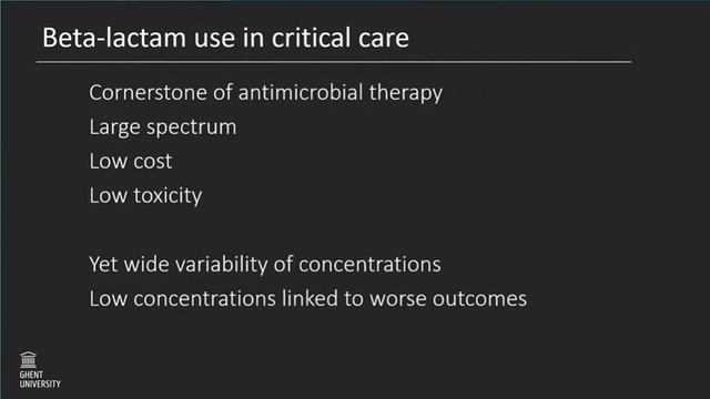 Novel antibiotics Andrew Shorr Combination therapy for Gram-negative infections: why, when, how and to whom? Thierry Calandra For carbapenem resistant bacteria Maya Hites Prolonged infusion of beta-lactam antibiotics: now the rule? Jan De Waele Optimal doses to treat obese patients Maya Hites When to stop antibiotics in severe CAP Antoni Torres When to stop: answers from data science Paul Elbers Nobody is using SDD: do we need more trials? Lennie Derde