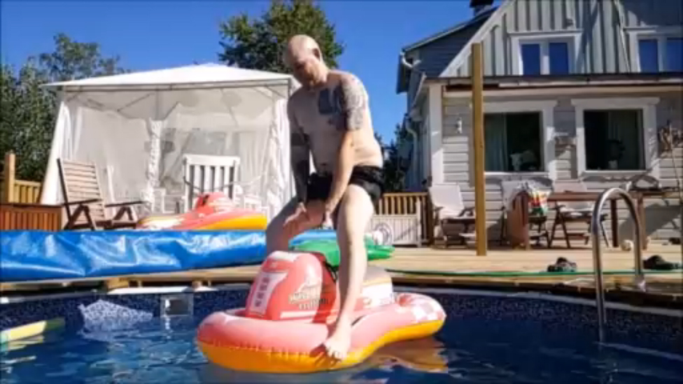 Эпично оседлал надувной водный мотоцикл