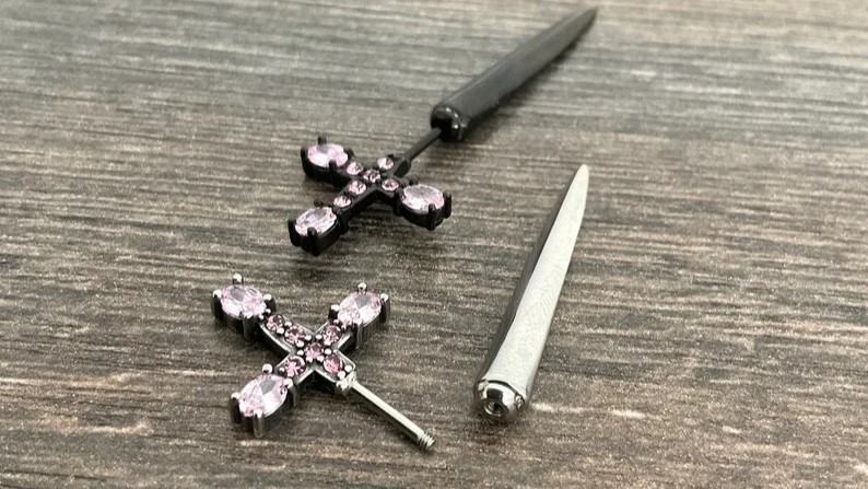 Дизайнерские серьги "Кинжалы с россыпью сияющих розовых фианитов по рукоятке" от StarfallShop доступны для заказа на Wildberries как парные серьги (арт. 109661416) и как моносерьга (арт. 126887942). Украшение доступно в золотом, серебряном и чёрном цвете, выполнено из гипоаллергенной ювелирной стали 316L, не подвержено окислению и коррозии, не боится контакта с водой и духами, имеет надёжный винт-замок. Серьги длинные моментально приковывают взгляд окружающих. Длина серьги - 5 см, ширина серёжки (рукоятки кинжала) - 1.5 см. Украшение выполнено в стиле унисекс: серьги мечи кинжалы крестики идеально подойдут и для мужчин, и для женщин, которым нравятся необычные украшения.