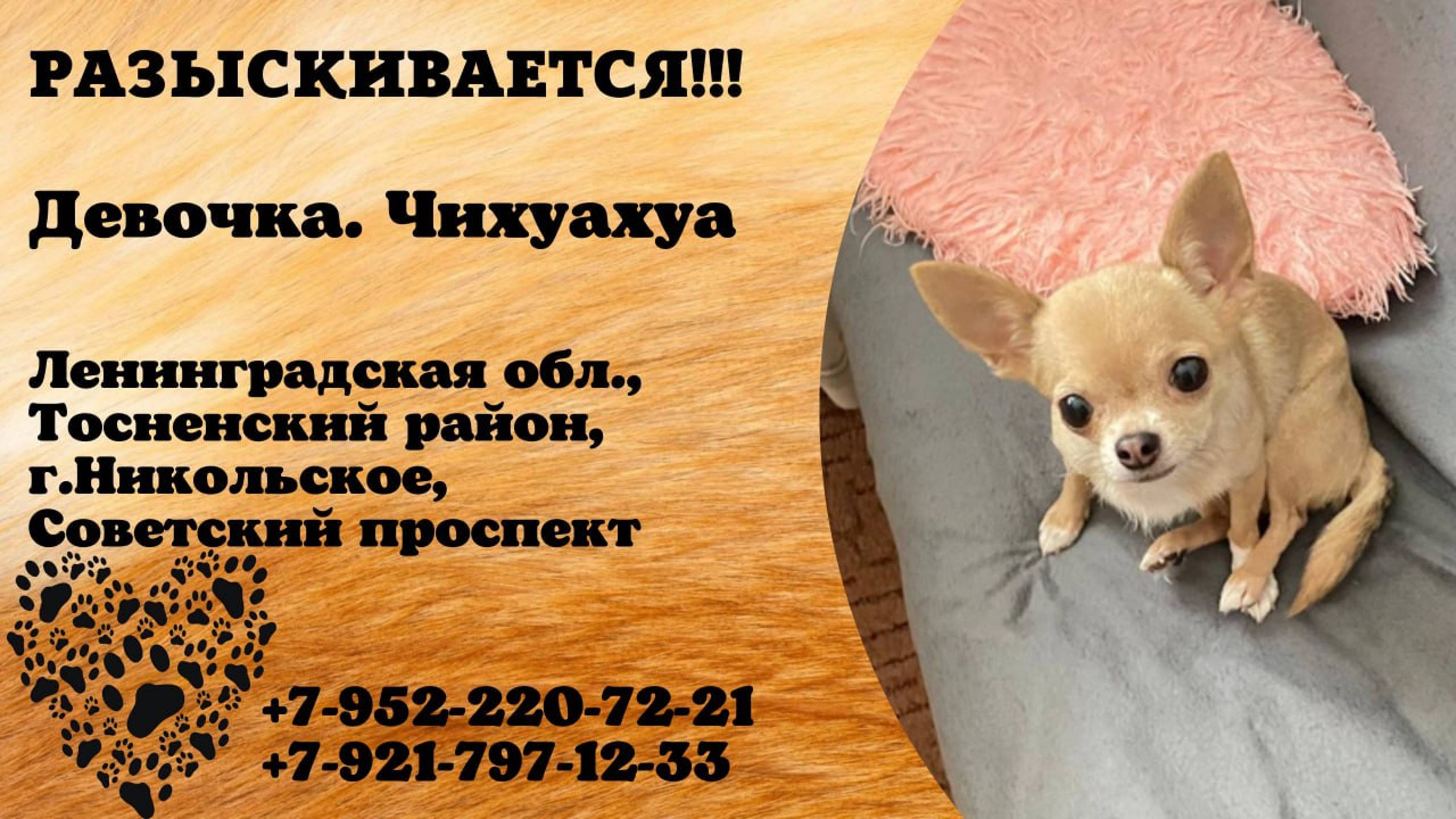 Пропала собака! Девочка. Чихуахуа. Ленинградская обл, Тосненский р-н, г. Никольское