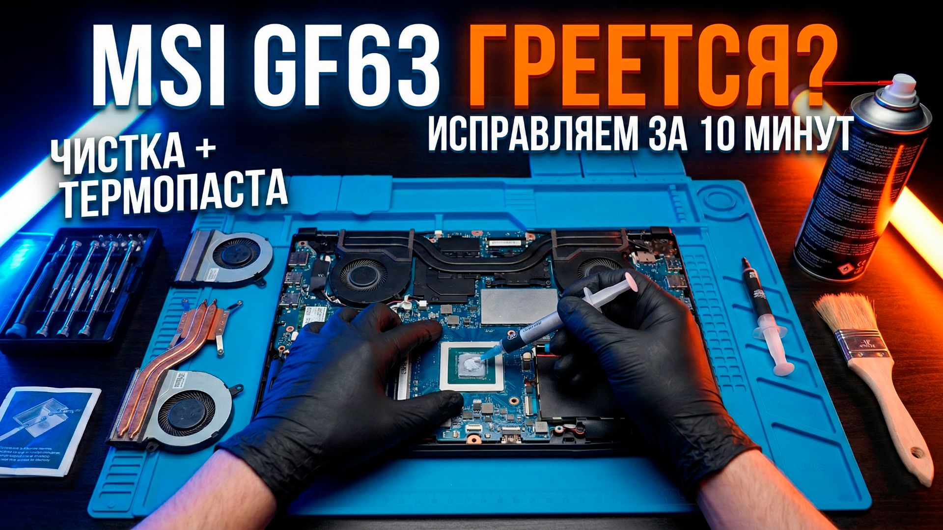 MSI GF63 ГРЕЕТСЯ? Правильная чистка и замена термопасты за 10 минут