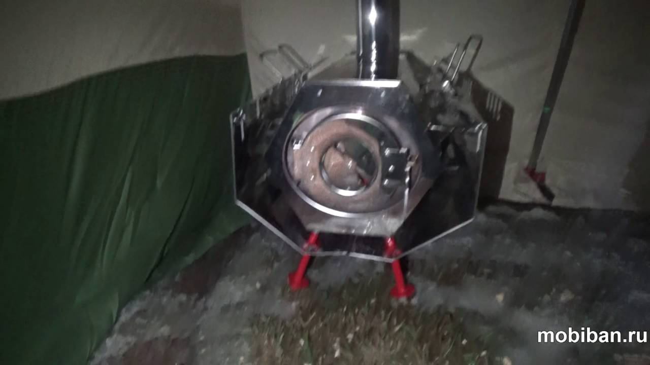 Палатка Роснар Р-75 (Мобиба Р-75) в собранном виде. Обход вокруг палатки в тёмное время зимой после сборки. Сама сборка с установкой и с растопкой печей заняла примерно 40 минут. Отзыв от принимающих участие в сборке палатки. Палатка Р-75: http://mobiban.ru/r-75.php