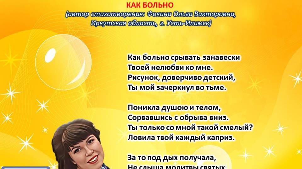 Ольга Фокина (Усть-Илимск) - КАК БОЛЬНО (читает автор)
