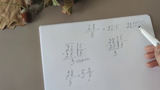Как перевести обыкновенную дробь в десятичную, как выделить целую часть.mp4