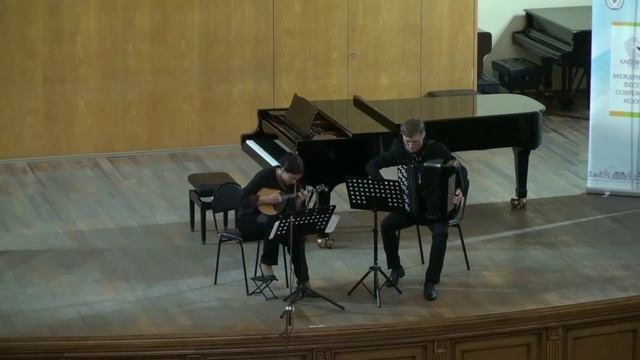 Кирилл Волков «Поклон Матери Марии» для домры и баяна (2017) Исполнители: лауреаты международных конкурсов Антонина Пугач (домра), Дмитрий Соловьёв (баян) Концерт камерной музыки «Музыка смыслов: от фольклора до модерна», проходящего в рамках IV Международного фестиваля современного искусства «Каспий – 2020/2021» 22.12.2020 Большой зал Астраханской государственной консерватории Данное сочинение Кирилла Волкова посвящено замечательной, героической русской женщине. Прекрасному поэту, герою французского Сопротивления. Все ее знали как Мать Марию. Она спасала в годы оккупации детей из гетто, хранила оружие борцов с фашизмом - и, погибла в Равенсбрюке, заменив в шествии на казнь девушку-еврейку! В начале 2000-х г.г. Константинопольский патриархат канонизировал Мать Марию (Елизавету Кузьмину-Караваеву) как Преподобномученицу... #кириллволков #русскаямузыка #музыкадлядомрыибаяна #домра #баян #музыкадлянародныхинструментов #агк #астраханскаяконсерватория #матьмария #мариякузьминакараваева #елизаветакузьминакараваева #равенсбрюк #сопротивление #православие #антонинапугач #дмитрийсоловьев #серебряныйвек #поэзиясеребряноговека #поэтырусскойэмиграции