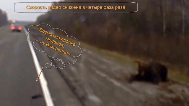 Медведь переходит дорогу и сбит автомобилем встает и бежит дальше Алин