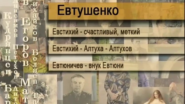 365 Дней ТВ представляет | Все фамилии России | Выпуск № 333 Происхождение, значение и история фамилии Евтушенко. #365днейТВ #История #ВсеФамилииРоссии #ИсторическиеФакты #ПроисхождениеФамилии Официальный сайт: www.365days.ru 365 Дней ТВ в соц.сетях: ВКонтакте: vk.com/tv365days Одноклассники: ok.ru/tv365days история, история России, мировая история, российская история, исторические факты, передачи об истории, все об истории, фамилия, история фамилии, происхождение фамилии, великие фамилии, значение фамилии По вопросам сотрудничества и рекламы: reklama@red-media.ru