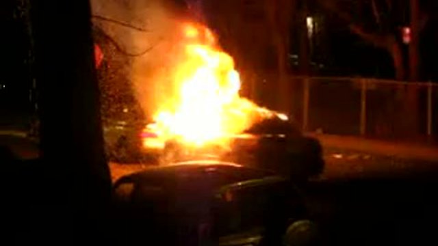 В Чикаго ночью загорелась машина. Соседи не растерялись - сняли на камеру.