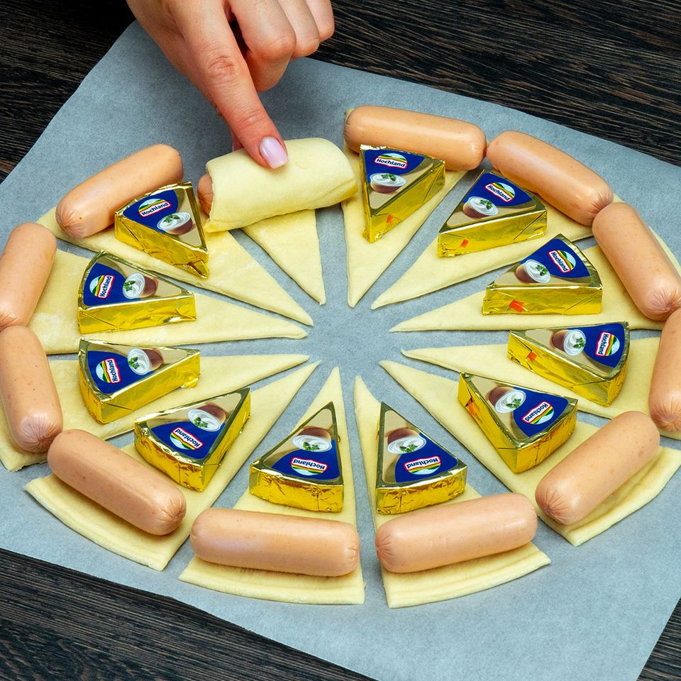 Быстрая закуска из слоеного теста и сосисок