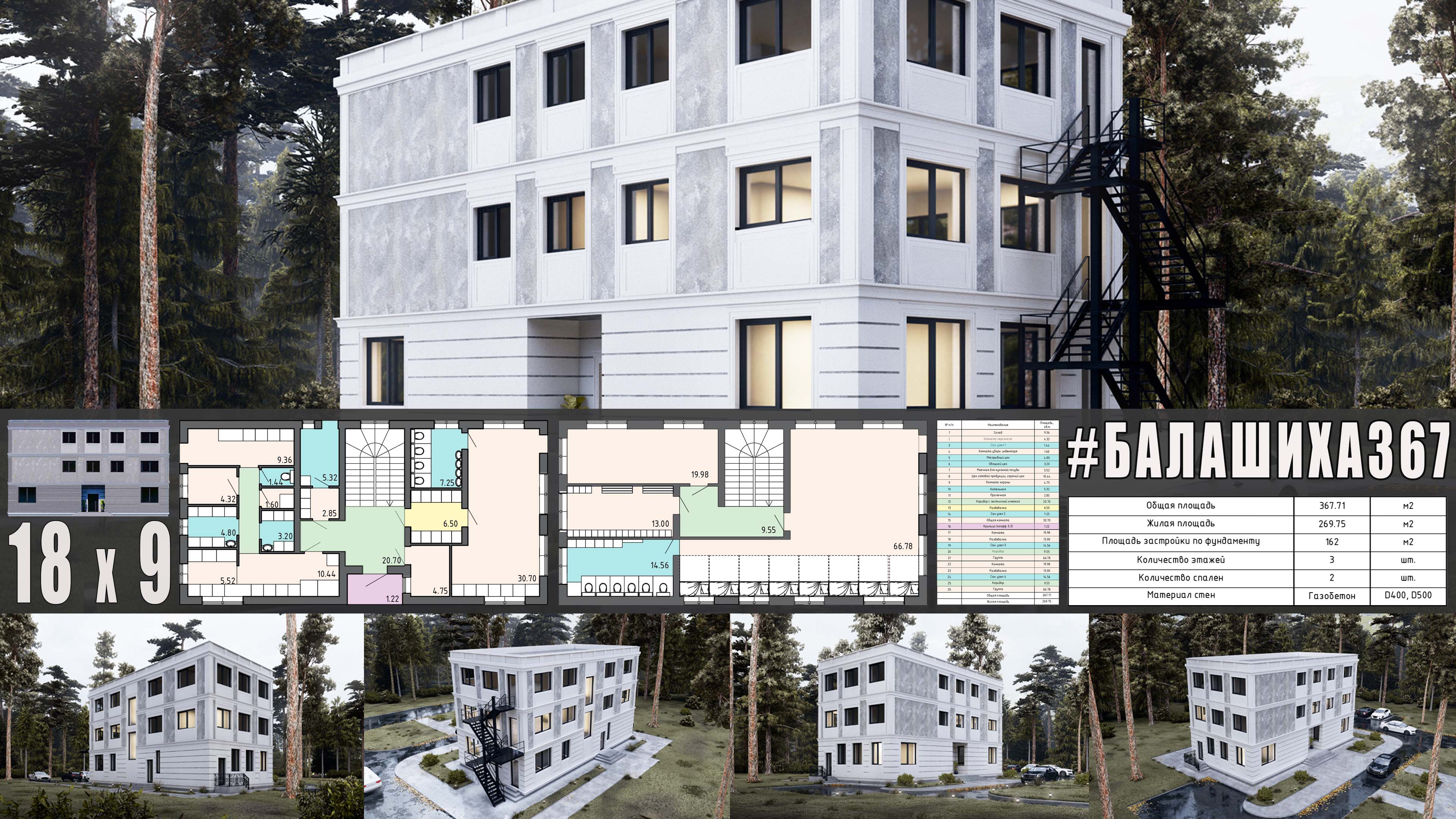 ?Выполнен индивидуальный проект трёхэтажного детского сада ИЗ ГАЗОБЕТОНА общей площадью 367 м2 с плоской кровлей в Балашихе / Москва? Это коммерческий проект частного детского садика в Подмосковье. Клиент имеет большой опыт в данной сфере и это его не первое дошкольное учреждение (ДОУ). Отличием от других аналогичных заведений является улучшение концепции планировок и эргономики - по сути, работа над ошибками, которые, по его мнению были допущены ранее, а исправлены сейчас. ☝️На наш взгляд, можно было что-то сделать иначе, но при индивидуальном проектировании больше учитываются пожелания клиента, которые затем "упаковываются" в архитектурные формы и конструктивные решения, соответствующие строительным нормам и правилам?⚒️??️ =ТЕХНИКО-ЭКСПЛУАТАЦИОННЫЕ ХАРАКТЕРИСТИКИ= - общая площадь – 367,71 м2 - жилая площадь – 269,75 м2 - площадь застройки по фундаменту – 1962м2 - габаритный размер – 18х9 м - количество этажей – 3 - фундамент – плита монолитная, 300 мм - стены – газобетон (наружные 400 мм, несущие внутренние 300 мм, перегородки 150 мм) - перекрытие 1,2,3 этажа – монолитное, 200 мм - кровля – плоская Заказать индивидуальный проект и строительство: "Проектное бюро Дарьи Коркоцкой" (ИП Коркоцкая Дарья Олеговна – ИНН: 344599917226; ОГРН: 318470400063002; ТЕЛ: 8 (812) 988-46-22; E-mail: info@daria-project.ru) #балашиха367 #проектизгазобетона #проектируйистрой === ? Проектируй и Строй грамотно!