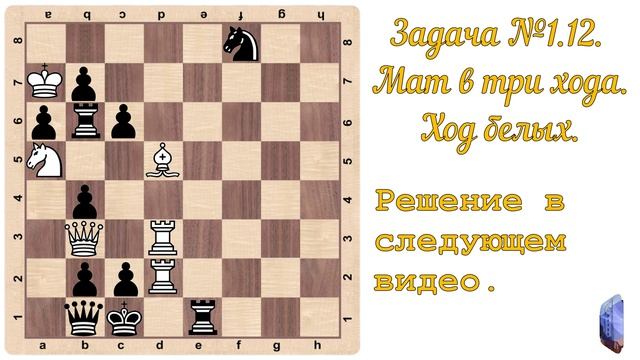 Шахматы. Задача №12, мат в три хода, ход белых.