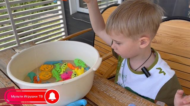 Руслан ловит рыбу в тазу