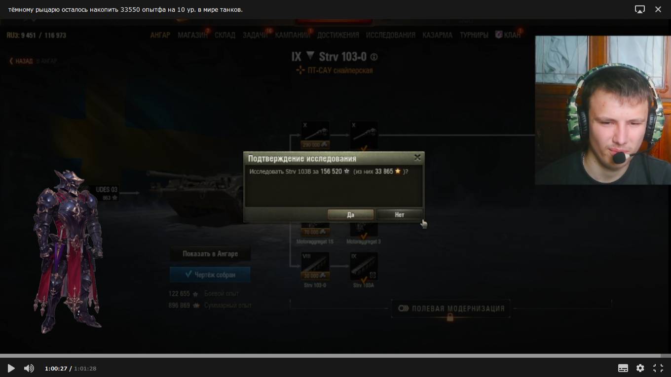 тёмному рыцарю осталось накопить 33550 опыта на 10 ур. в мире танков. 57 серия.