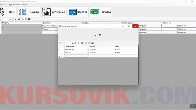 АИС учёта дополнительных платных услуг в дошкольном образовательном учреждении (ДОУ) Visual C# + SQL