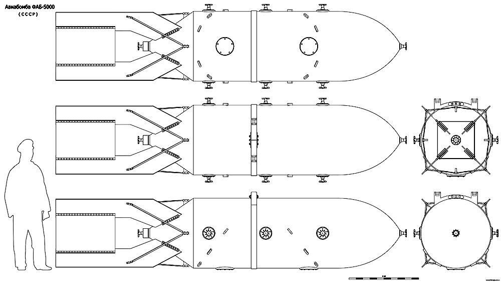 Авиабомба ФАБ-5000. Чертёж. FAB - 5000 kg. Drawings.