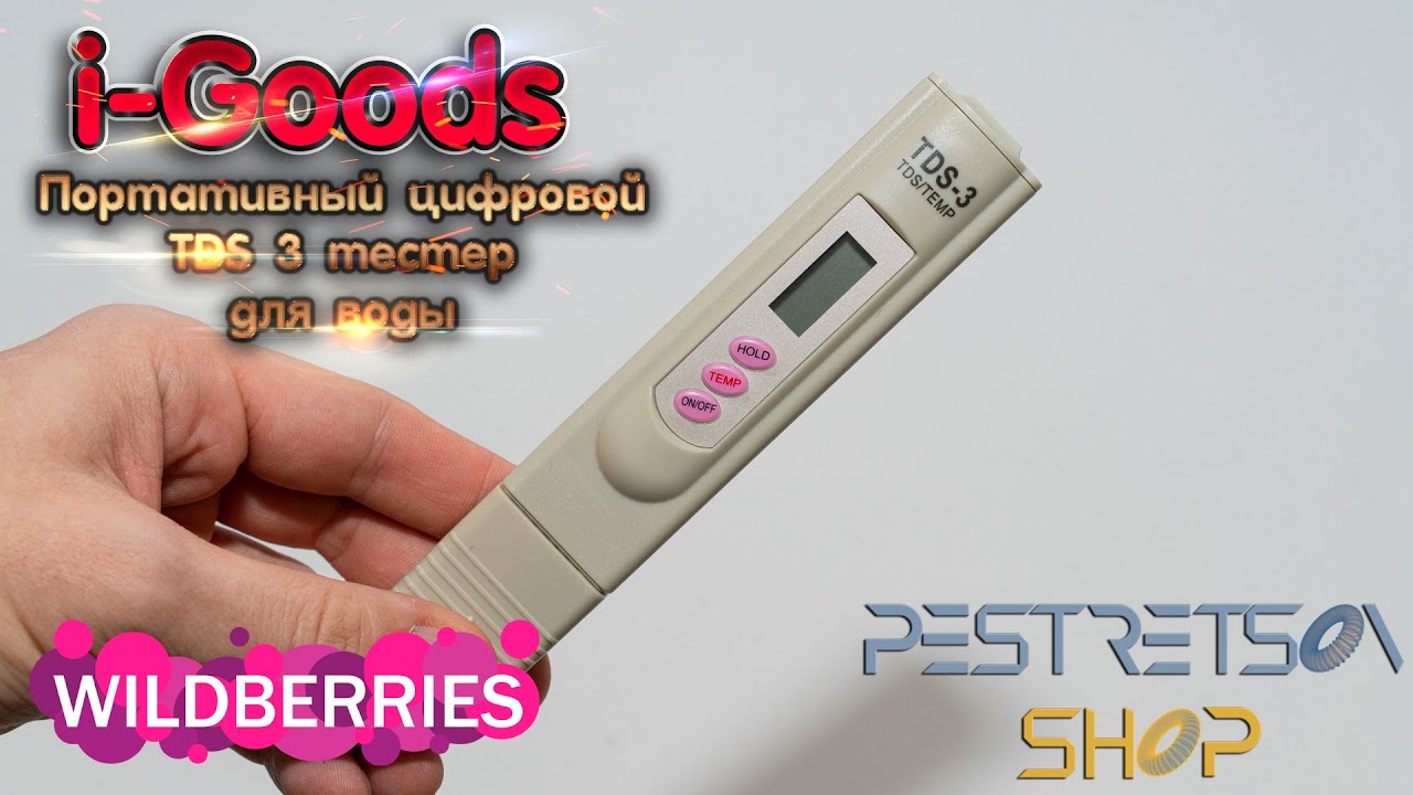 ? Переносной анализатор TDS-3 предназначен для измерения общего количества частиц (минерализация воды), растворенных в воде солей (TDS - total dissolved solids) на один миллион частиц воды - ppm (parts per million), а также и температуры воды. TDS-3 предназначен для бытовых и профессиональных целей измерения солесодержания и температуры воды в системах водоподготовки и очистки воды для гидропоники, аквариумов, бассейнов, а также анализа воды в скважинах и колодцах. Технические характеристики TDS-метра модели HM Digital TDS-3: Диапазон измерения минерализации воды: 0-9990 ppm (мг.л) Диапазон измерений температуры воды: 0-80 градусов Автоматическая температурная компенсация (ATC): да, 0-80 C Цена деления: 1 ppm, 1 градус Точность: + - 2% Срок работы элементов питания: от 1,000 часов непрерывного использования Автовыключение через 10 мин. неиспользования Размеры: 155 x 31 x 23 мм Вес: 56.7г ? Для желающих поддержать монеткой :) Разовый донат https://new.donatepay.ru/@pestretsovshop ?? Привет, Я Дмитрий! Задавайте вопросы по товару :) Буду рад пообщаться со всеми! ? Продажа на площадках Wildberries: https://www.wildberries.ru/catalog/12946635/detail.aspx ❗Очень ВАЖНО☝☝☝ ?Нажать В топ? : ✍И Подписаться на канал!✍ : #TDS-3 #тестерводы #тестердляводы