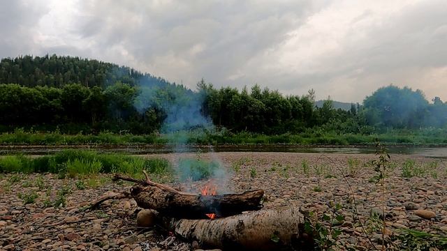 берег реки вечер у костра звуки леса и пение птиц