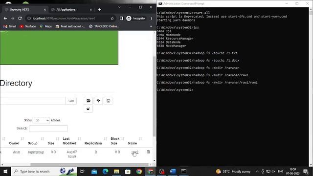 Sample Commands for creating files: Ex: hadoop fs -touchz /1.txt, hadoop fs -touchz /1.docx Commands for creating directories: Hadoop fs -mkdir /mydir Command to create subdirectory: Hadoop fs -mkdir /mydir/dir1 Retrieving files: Hadoop fs -get /path/to/1.txt c:\local\ Haddop fs -put /path/to/1.txt c:\local\ Deleting file: Hadoop fs -rm /1.txt Deleting directory: Hadoop fs -rm -r /directoryname