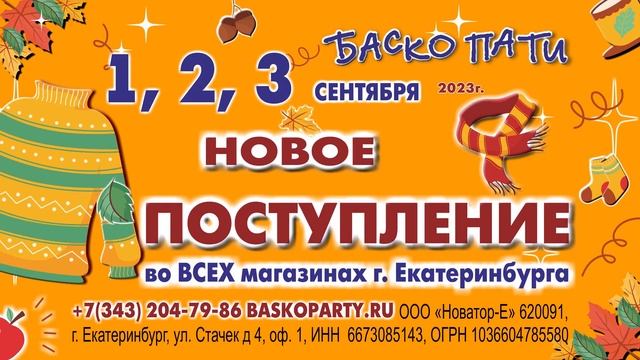 1, 2, 3 сентября НОВОЕ ПОСТУПЛЕНИЕ! Во ВСЕХ магазинах г. Екатеринбурга, г. Челябинск, Свердловский проспект, 14, г. Пермь, Н. Островского, 60.  #НОВОЕПОСТУПЛЕНИЕ_БАСКОПАТИ #ОсеньБаскоПати Приятных и ярких покупок!