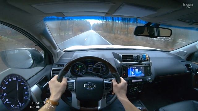 2013 Toyota Land Cruiser Prado J150 facelift — 190HP 3.0 R4 diesel — 5AT, 4WD, 5-door, 7seats, 2013-2017 | €30.000 CAR AUTOBAHN / FOREST / TERRAIN 4K TEST DRIVE POV - DIRTY OFF-ROAD & SNOWY DRIVE - INTERAXLE & REAR DIFFERENTIAL LOCK, HI4 / LO4 TRANSMISSION, ACCELERATION 0-50 0-100, ELASTICITY 50-90 80-120, 3-LITRE DIESEL ENGINE SOUND & ENGINE VIEW, NO SPEED LIMIT, EMERGENCY BRAKING TEST, INTERIOR AND EXTERIOR POINT OF VIEW Power & Torque: 140kW/188bhp (190HP) | 3400rpm 420Nm | 1600-3000rpm Acceleration times: 0-50: 3,7s 0-100: 11,7s (official) 0-100: 11,9s Elasticity: 50-90: 8,3s 80-120: 8,7s Braking test: 100-0: 3,7s Top speed: 175km/h Transmission: 5AT Drivetrain: AWD Weight: 2370kg Length: 4780mm One liter power: 47kW/63bhp One ton power: 59kW/79bhp Fuel consumption: 8,2L/100km - combined official 9,8L/100km - more real combined 13,8L/100km - test drive Fuel tank capacity: 87L Permitted trailer load: 3000kg with brakes 750kg without brakes 0:00 INTRO 0:35 start engine 0:54 off-road 2:58 on-road 3:20 launch control 3:55 elasticity 50-90 4:26 engine view 5:07 sound 5:27 emergency braking 5:50 elasticity 80-120 6:10 autobahn 7:08 EXTRA ZONE #TopAutoPOV #LandCruiser #D4D