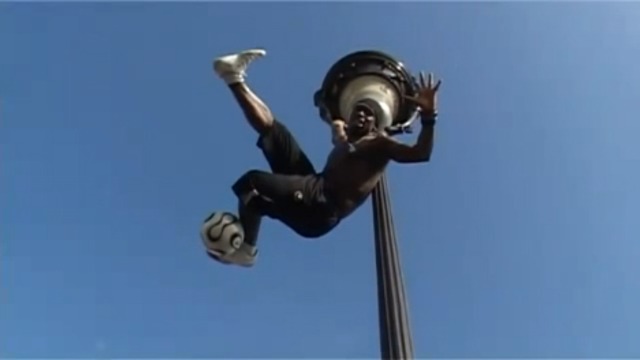 С мячом залез на фонарь
