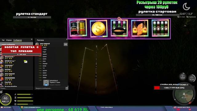 Поддержка донатом https://www.donationalerts.com/r/kalyamba11 Альтернативный донат https://new.donatepay.ru/@1032463 Если стрим лагает,смотри стрим на трово https://trovo.live/s/Kalyamba_na_Ribalke Мой ВК - https://vk.com/kalyantv НИК в игре kalyan11 НАШ ДИСКОРД СЕРВЕР https://discord.gg/mSbnTJK8TB Заказ водоема на 1 час - 500р ( весь стрим 2500р ) Модерка на канале 1200р ( каждая следующая на 100р больше) Озвучка доната на 40р,50р,100р,200р,300р,500р,1000р ✅Призы в рулетке "ЗОЛОТАЯ" ✔ ЗОЛОТО ✔ ПРЕМ ✔ КАТУШКИ РАПТОР 40, АЗИМУТ 10000, СИЛЬВЕР 80, ТАЙГА с 30 ✔ ПАЛКИ ПИЛКЕРНАЯ, ДОНКА МОРСКИЕ, ✔ РОД ПОД, СТУЛЬЯ ✅Призы в рулетке СТАНДАРТ : ✔ катушка "РАПТОР 40" ✔ катушка "АЗИМУТ 10000" ✔ катушка "ТАЙГА С30, С40," ✔ катушки 60 для медного ( ЭВИИ, НАТОРЫ, ГОЛДА, и тд) ✔ ПИЛКЕРНОЕ УДИЛИЩЕ КОРОЛЕВА ОКЕАНА ✔ Морское Донное удилище ✔ прем ( 3, 7, 30 дней) ✔ золото ( 1, 3, 5, 10, 20 ,50) ✔ билет на море ( 1, 3, 5 дней) ✔ голд наживка и др. ✅Призы в рулетке "СТАРТОВАЯ" ✔ катушка "silver80" ✔ катушка "БЕЛЫЙ КАЛИБР" ✔ катушка "Черный калибр" ✔ катушка "Протон" ✔ катушка "Нарга 6000" ✔ Набор Фидерист и спинингист ✔ Карповик Фортуна ✔ фидерные удилища ✔ прем, золото, алкашка, наживки и тд P.s Рулетка это не казино, а награда за поддержку стримера. Вечный ТОП ПОДДЕРЖКИ (11.05.2024) 1. Dimon_pokemonchik 119 784 2. Interceptor 75 508 3. Skreb79 71 261 4. une personne 68 619 5. Нарвал77 31 550