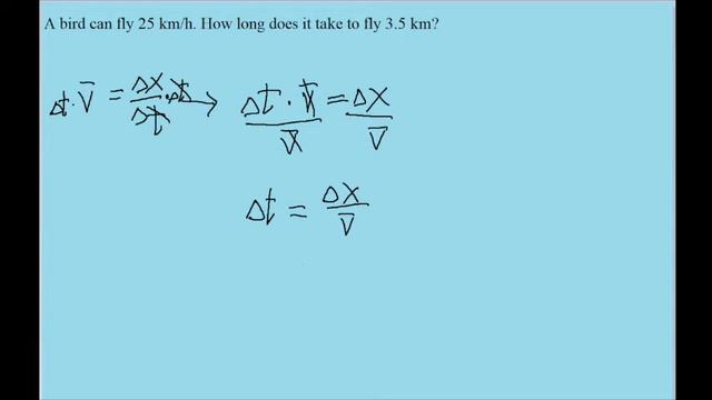 iscord server: https://discord.com/invite/8rVzwnKWkC Twitch: https://www.twitch.tv/ktbmedia A bird can fly 25 km/h. How long does it take to fly 3.5 km? If there is another problem from this textbook or problem set that you would like me to explain, please send me a request. My e-mail is given in the channel description, and I've included other contact links below. If my videos have helped you, and you would like me to keep making more, please *consider* donating to my Venmo or Patreon at the links below. Even a small amount of money can add up and support me immensely! Twitter: https://twitter.com/KTBUpdates Instagram: https://www.instagram.com/kevinbarbuto/ Venmo: https://venmo.com/kevin-barbuto Patreon: https://www.patreon.com/ktbmedia