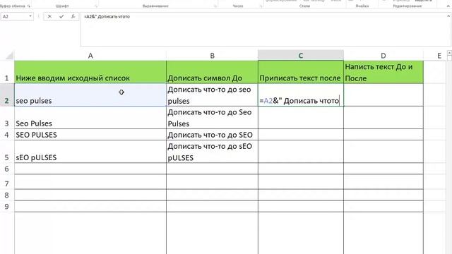 Возможность добавить символ до или после нужного значения в ячейке — это нужный навык, позволяющий решить огромное количество задач, например, создание артикулов, предложений или любых других целей. В данном видео мы научимся дописывать фразы до или после значения в Excel. Ссылка на инструкцию: https://seopulses.ru/dobavit-simvoli-do-ili-posle-znacheniya-v-excel/ Социальные сети: Youtube: https://www.youtube.com/channel/UCMxv-al5INASC2Agq8igGZg Telegram: https://t.me/seopulses Яндекс.Дзен: https://zen.yandex.ru/seopulses ВКонтакте: https://vk.com/seopulses Facebook: https://www.facebook.com/seopulses.ru/ Rutube: https://rutube.ru/channel/27816707/ Таймкоды: 00:00 Вступление 00:15 Дописать символы ДО 01:04 Дописать символы ПОСЛЕ 01:39 Дописать символы ДО и ПОСЛЕ