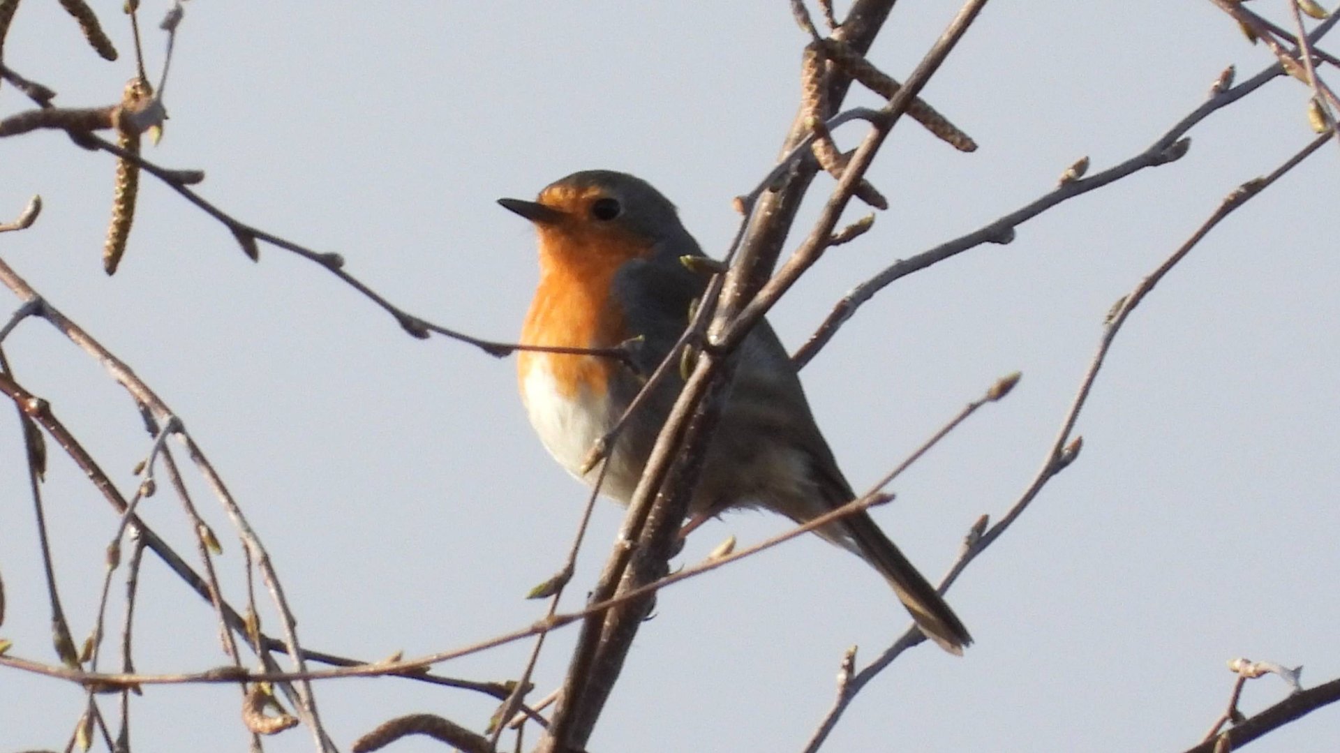 Зарянка, Малиновка поет, наблюдение птиц в Новгородской области, Вяжищи, 5 апреля 2025