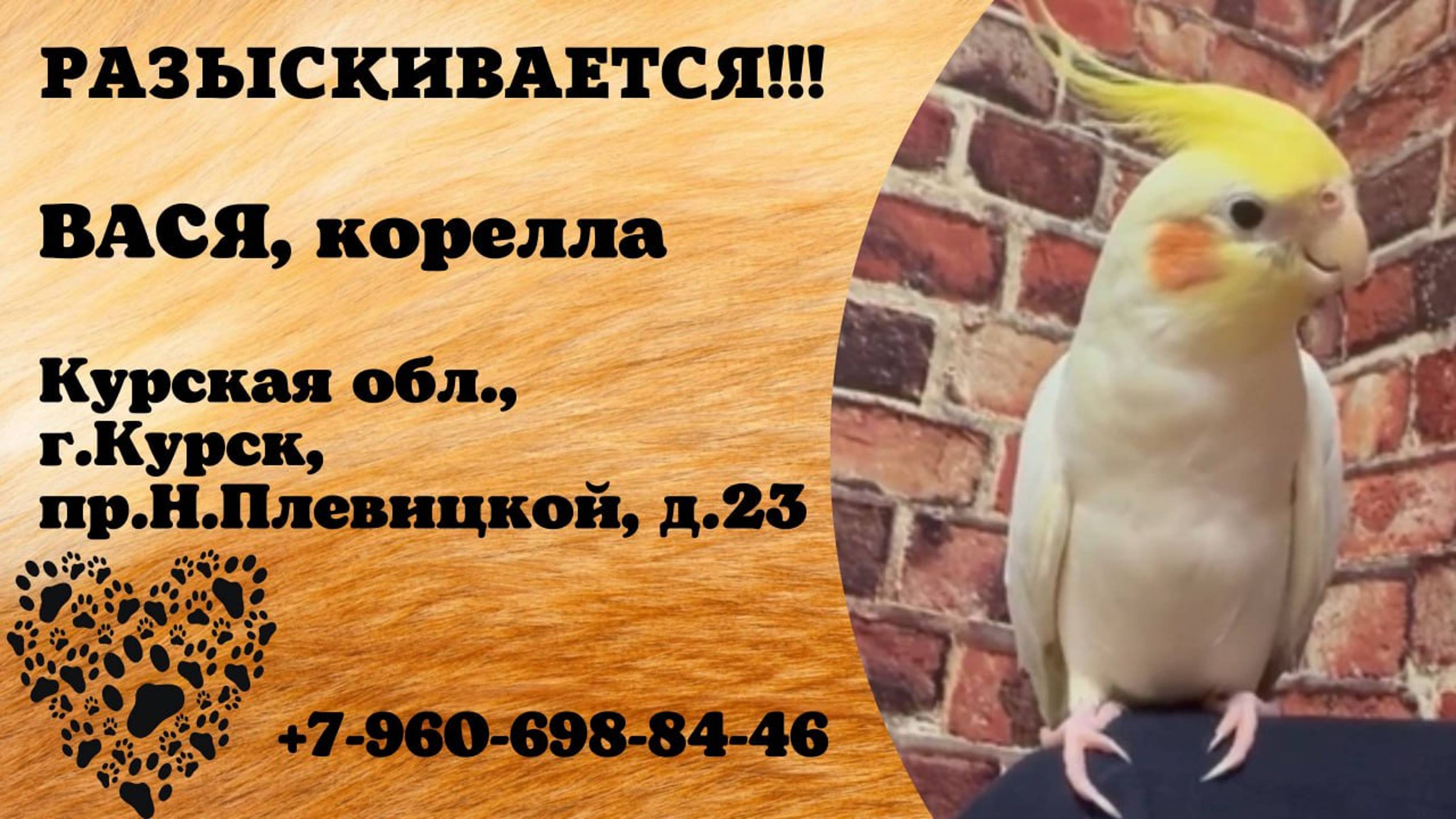 Пропал попугай! ВАСЯ. Корелла. Курская обл, г. Курск