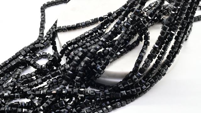 Бусины из циркона кубик гр.4*4мм цв.черный, 39см, 89 бусин б64168