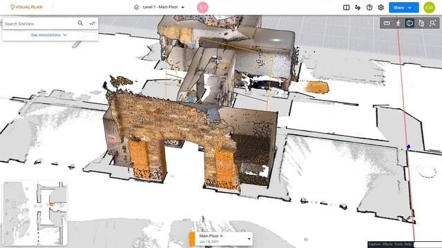See a 5min SLAM point cloud slice compared to a 3D point cloud from an iPhone 12 hosted in Visual Plan 3D Digital Twins software, SiteView.