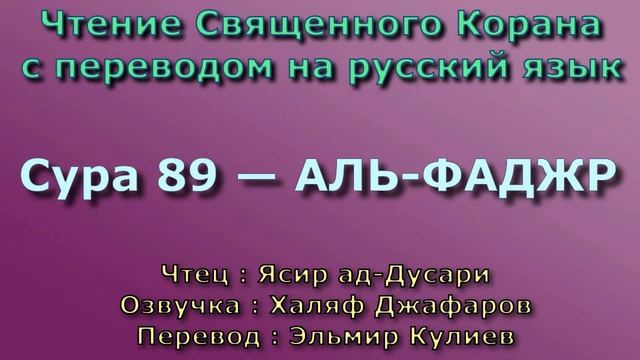 Чтение^Озвучка - Корана Чтец: Ясир ад-Дусари Озвучка: Халяф Джафаров Перевод: Эльмир Кулиев Источник YouTube канал: " Священный Коран "