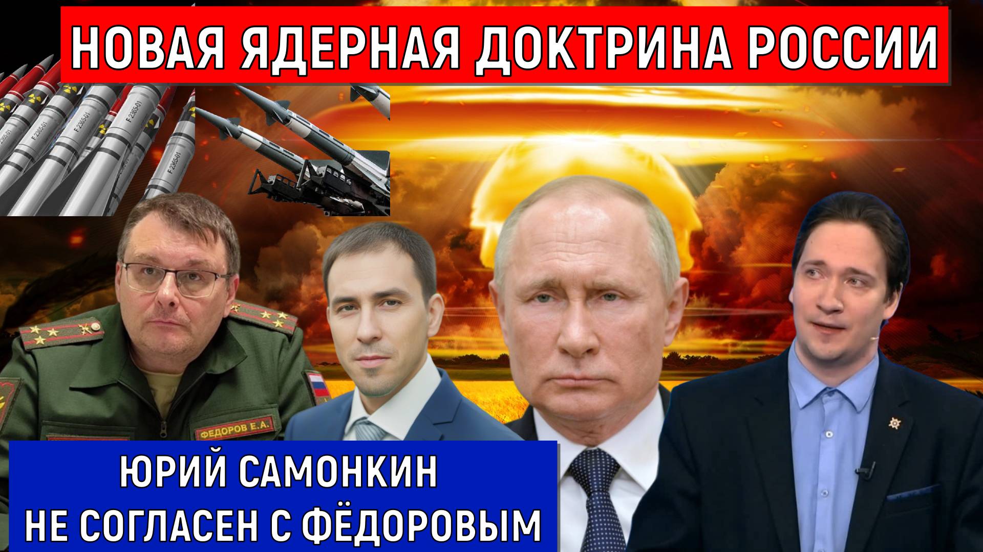 Новая ядерная доктрина России. Самонкин не согласен с Евгением Фёдоровым. Руслан Михайлов политобозреватель России сказал своё личное мнение основываясь на факты Юрий Сергеевич Самонкин политолог России, Президент "АНО Евразийский институт и молодежных инициатив" Евгений Федоров депутат госдумы и является главным в движении НОД ссылка на книги Юрия Сергеевича Самонкина, политолога России https://ridero.ru/books/po_sledam_istorii_kholodnoi_voiny/ мой официальный сайт ✔️Подписка на сайт 👉 https://ruslanmikhailov.ru/ В ролике Руслан Михайлов могут быть использованы фото, рисунки и аудио файлы из открытых источников Google, Яндекс, YouTube Подписаться на мои каналы Поддержать канал - 4100117815002119 (Юмани, ЮMoney ) ✔️Подписка на канал 👉Дзен Канал https://dzen.ru/id/64dccedd72283b41bf5d9ad4 ✔️Подписка на канал 👉Платформа Канал https://plvideo.ru/channel/veCt8BxBFiKM ►ТЕЛЕГРАМ-КАНАЛ -https://t.me/ruslnmikhailov #русланмихайлов#юрийсамонкин#youtube#россия