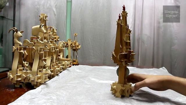 Примитив - не значит простота. Это - искренность и эмоциональность. Представляем шаркунки* замечательного мастера работ по дереву из города Шенкурск Архангельской области Константина Александровича Печинкина (1906-1993). Из фонда Шенкурского краеведческого музея. Среди работ Константина Александровича были шаркунки и различные игрушки-головоломки. Особенно знаменитым стал портсигар с секретом. В видео представлены 7 работ мастера: 01 Шаркунок ручной "Петушок" /1978 г./ 02 Шаркунок-гигант "Коник" /длина - 80 см./ 03 Шаркунок-дуга "Петушок" /1980 г./ 04 Шаркунок ручной "Сова" /1979 г./ 05 Шаркунок ручной "Олимпиада-80" /1980 г./ 06 Шаркунок двойной "Минареты" /1987 г./ 07 Шаркунок тройной "Свинарка и пастух" /1991 г./ * Шаркунок – это детская погремушка с севера России, которую традиционно дарили на рождение ребенка. Ручка-балясина держит шар, собранный с помощью особых замков-защелок из множества деревянных пластинок-брусочков. При потряхивании в полых ячейках внутренней структуры шаркунка перекатываются камушки или горошины. На верхушке вырезается фигурка: для девочки – птицы, для мальчика – коника. Игрушка несла магический смысл. Шум, издаваемый ею, отгоняет от ребенка злые силы.