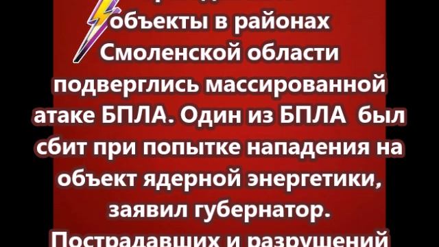 БПЛА в Смоленской области был сбит при попытке нападения на объект ядерной энергетики