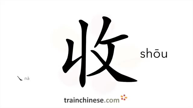 收 (shōu) to receive; collect; income; harvest