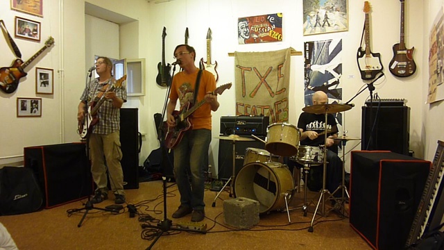 12 июля 2014. Выставка Первого национального музея рок-музыки "Let it be". Арт-центр "Пушкинская. 10". Встреча любителей ретро-гитар со старинными песнями и плясками в исполнении ансамблей "Грибы!", "OleUm tm" и "Pravednik's Band". "Грибы!"
