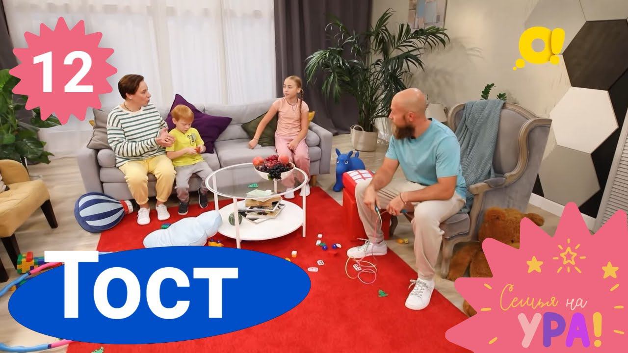 Семья на ура! Выпуск 12. Полезный тост | Телеканал О! Неунывающая активная семья Тутты Ларсен и Валеры Колоскова встретит утро субботы вместе с нашими телезрителями! Любимая телеведущая Тутта Ларсен, её муж Валера Колосков и их дети — Марфа и Ваня — соберутся вместе, чтобы поделиться со зрителями идеями для весёлого и интересного досуга в выходные дни в кругу семьи. Герои расскажут о предстоящих мероприятиях, выставках, квестах, экскурсиях, на которые стоит обратить внимание. В каждом выпуске программы они будут связываться с такими же активными и дружными семьями из разных уголков России, которые покажут, как увлекательно провести время в своём городе. Чик зарядка – http://bit.ly/2qOXunj ⭐⭐⭐⭐⭐⭐⭐ Подписывайся на детский познавательный телеканал О! - https://goo.gl/2cSabe "О! Дети" – https://goo.gl/WzLQxt Спроси моего папу – https://goo.gl/MTEgdA