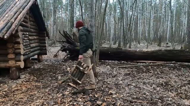 #bushcraft #logcabin #survival Today I went for a month's survival in my bushcraft log cabin, to finish the missing furniture, collect fresh birch sap and explore the icy river for my future fishing