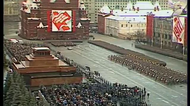 7 ноября 1990 года на Красной площади в Москве состоялся последний военный парад в истории СССР. Мероприятие проходило в честь годовщины Великой Октябрьской социалистической революции. Впервые прямая телетрансляция из Москвы велась не только на республики Советского Союза, но и за рубеж. Парад принимал министр обороны СССР, маршал Советского Союза Дмитрий Язов. Докладчиком выступал командующий войсками Московского военного округа, генерал-полковник Николай Калинин. Торжественным маршем по Красной площади прошли 117 бронемашин и танков Т-72 и Т-80, самоходные артиллерийские системы «Гвоздика», «Акация», «Нона-С», «Град» и «Ураган», зенитные ракетные комплексы «Оса» и впервые системы С-300. Завершился парад манифестацией трудящихся Москвы, во время которой в Михаила Горбачёва стрелял из обреза житель Ленинградской области Александр Шмонов. Источник https://vkvideo.ru/@club72658905/all